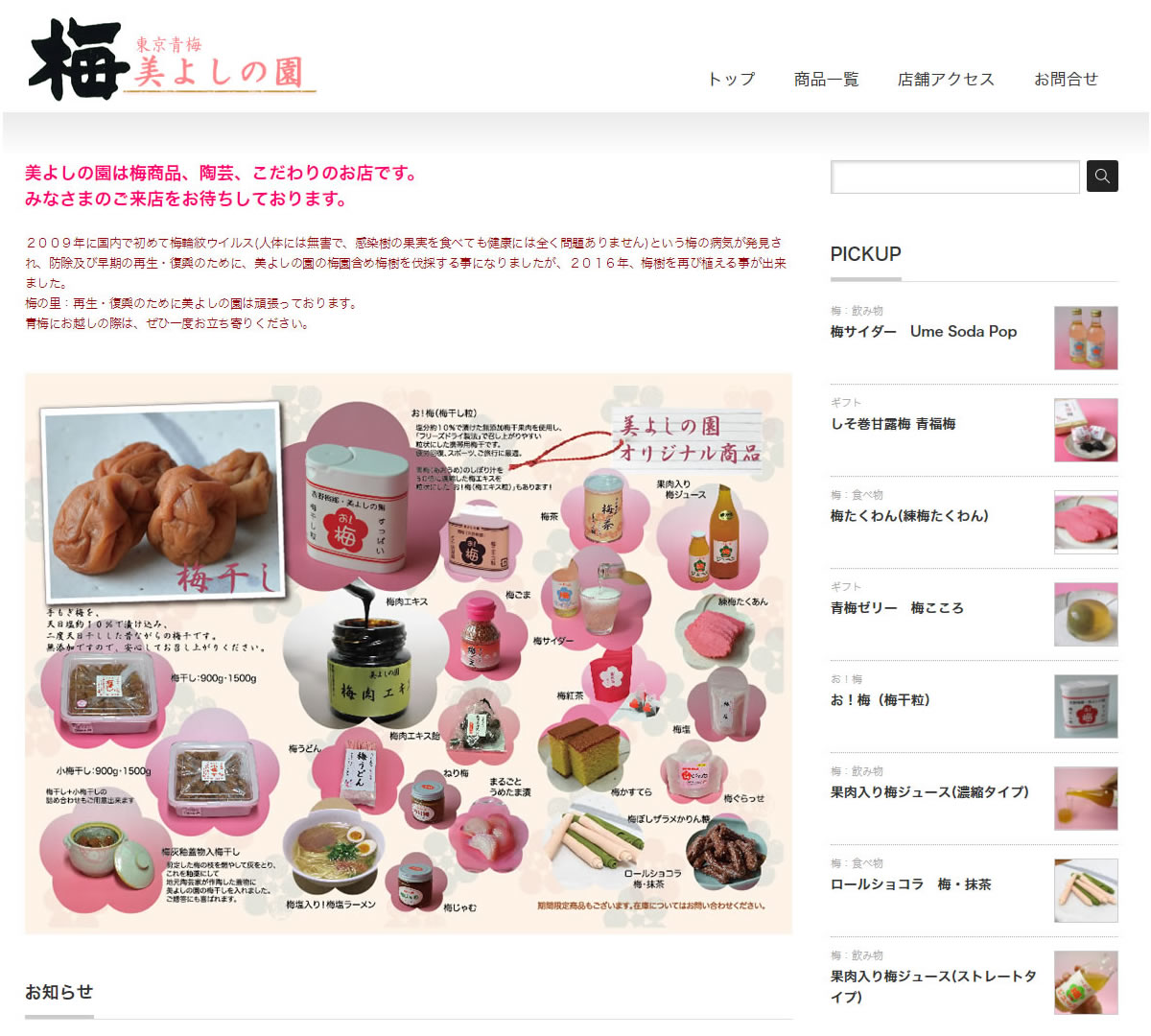 梅干し・梅商品販売 青梅:美よしの園様のホームページをリニューアル致しました。